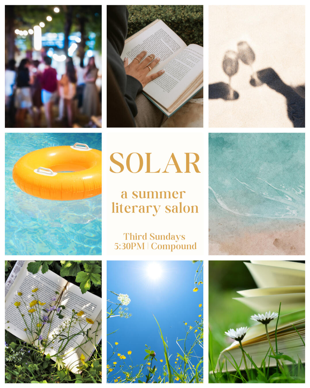 SOLAR is a literary salon bringing together writers across genres to perform and discuss their work. Occurring monthly from June-September, each gathering features a conceptual theme to connect the work performed and guide the conversation.
